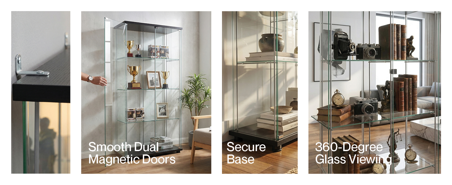 Secure & Accessible: Features two smooth magnetic doors for incredibly easy access. The high-quality glass and MDF surfaces are highly durable and wonderfully easy to clean, keeping your display pristine.